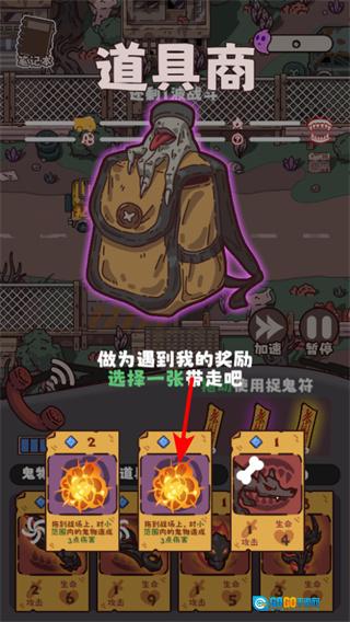 当遇到道具商时,你可以挑选一张道具卡牌带走,这些道具在战斗中能为你提供助力,有助于提高战斗的胜率。