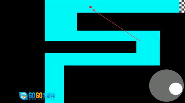 2、滑动右下角的方向轮盘,即可操控红色方块在迷宫内移动。