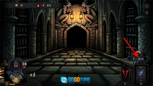 2、战胜敌人后点击下一个房间就能进入新场景,进入前可以留意一下场景的布局以及可能会出现的敌人,为接下来的战斗提前做好准备。
