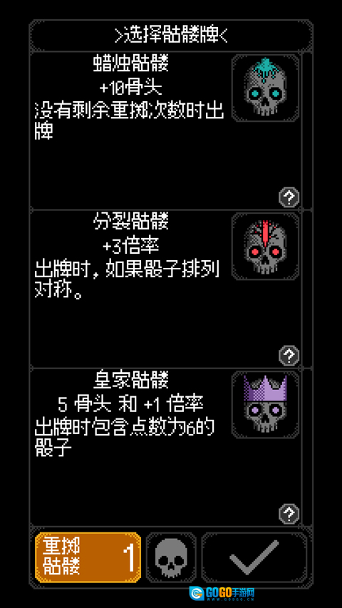 4、每次进行登记提升时,还能选择新的骷髅牌,借此提升骨头数量与倍率。
