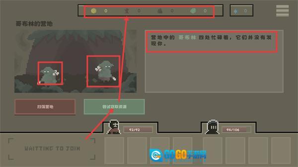 3、进入【哥布林的营地】后,哥布林还没察觉到我方,选择【尝试窃取资源】就能获得物资,这时候要注意保持队伍状态。