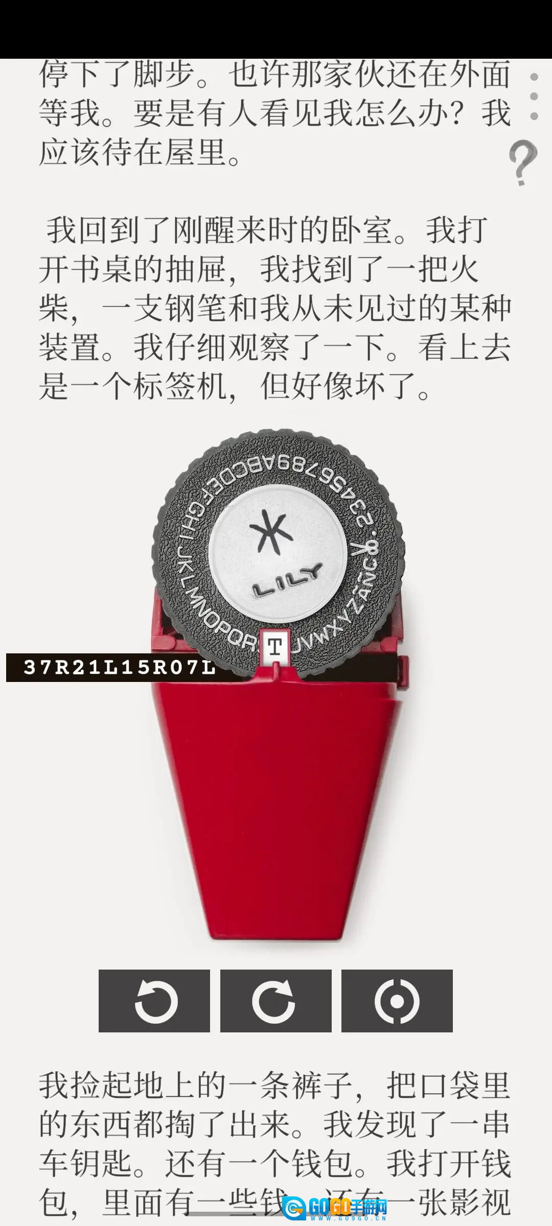 将标红圈的字母提取出来,用标签机打印后,即可得到保险箱密码37R21L15R07L。