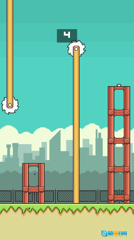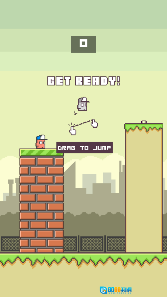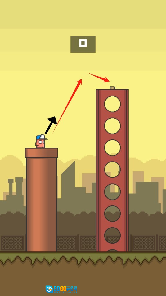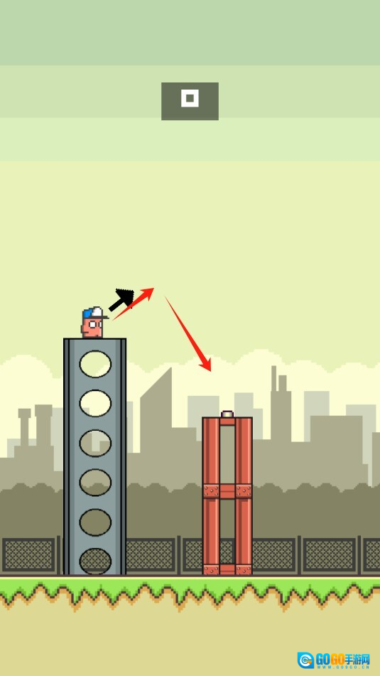 在游戏里,点击小人并滑动屏幕会出现黑色箭头,你可以通过调整箭头的长度(参照第二根柱子的间距)来确定跳跃的距离。