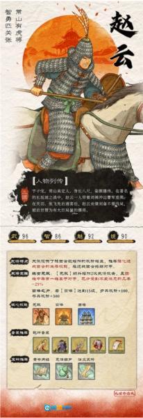 武将传记:身高八尺,容貌英武伟岸,跟随刘备南征北战近三十载,立下赫赫战功,被世人称赞为具备大臣气度与格局的儒将。