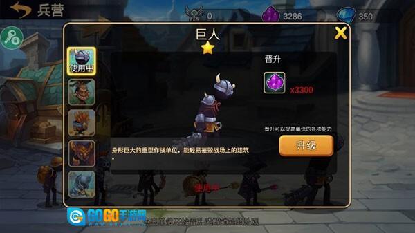 巨人:具备强劲的攻击力,不过攻击速度与移动速度都比较迟缓,同时拥有较高的防御力。