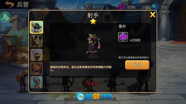 成功完成对抗敌军营地的任务后,玩家可前往军械库,使用技能点为兵种升级;每个兵种升级后,基础攻击力和防御力都能得到提升。
