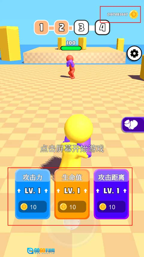 3、玩家每次击败对手所获得的金币,能够用来提升自身的攻击力、攻击距离与生命值。