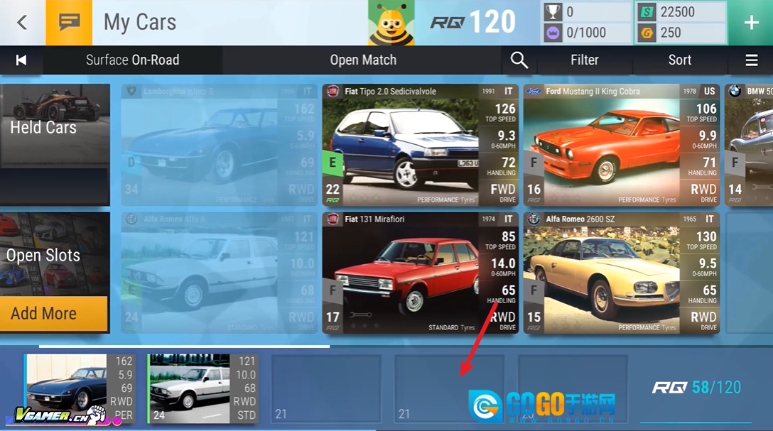 1、在比赛正式开始之前,我们得从自己的车库里挑选车辆,组建一支赛车小队。
