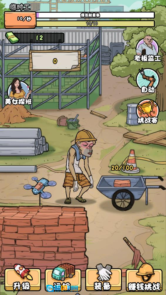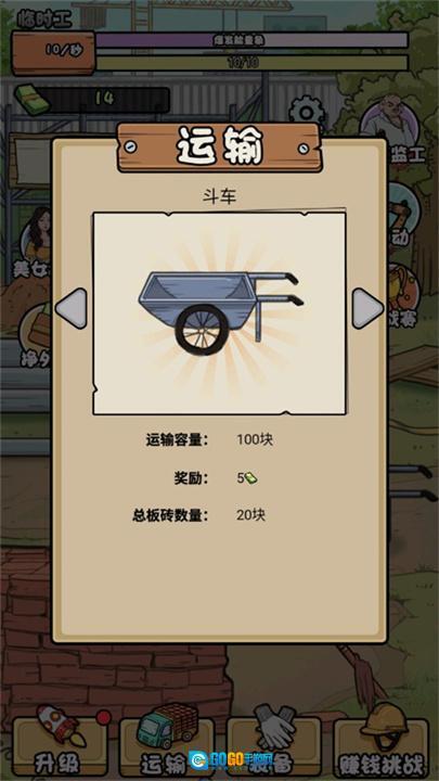 2、游戏中设有可升级的各类属性,玩家能够通过提升力量、体力等属性来提高搬砖的效率。