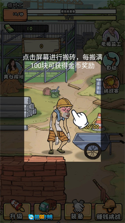 5. 在挑战赛里,点击砖头就能开展搬砖操作,每搬运一块砖,玩家的搬砖数值都会得到提升。