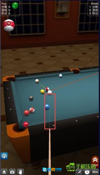 4、游戏的画面表现与操作方式都存在值得肯定的地方,并且在操作过程中,当把球杆向后拉出特定距离后,就会显示出代表击球力度与方向的轨迹线。