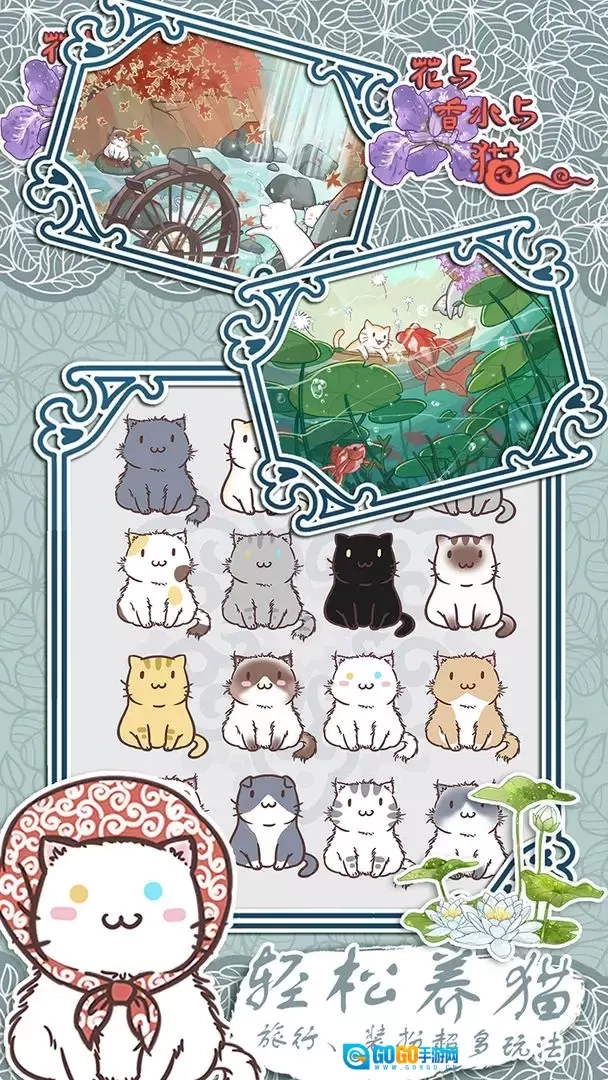 3、各种各样的萌趣猫咪,会在旅行途中为你带回形形色色的道具与花朵。
