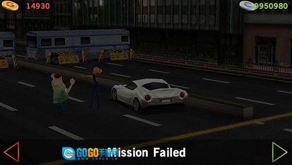 9、要是没能及时把方向盘回正,就很可能引发【交通事故】,游戏也会随之结束,此时点击左侧箭头可返回,点击右侧箭头则继续。
