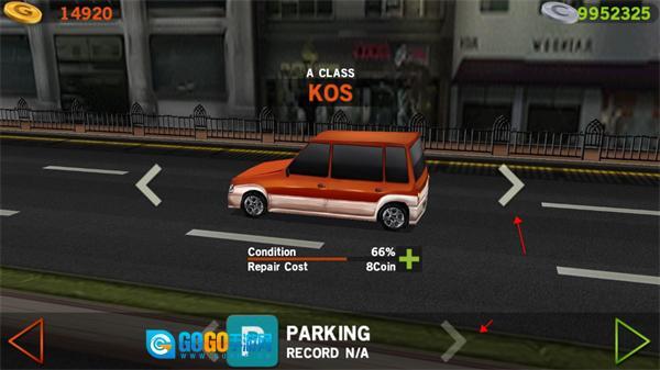 2、车辆旁边箭头可以换车辆,下面是可以换赛道的。