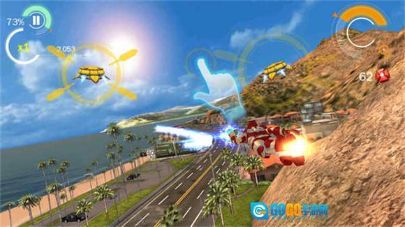 2、这款游戏的操作方式十分独特,你得通过滑动的方式来操控钢铁侠的移动与攻击。