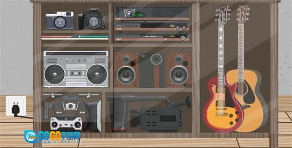 唱片得先装进袋子里,才能放入柜子;两根小棍子要放在手柄上方,接着将手柄放进柜子,放好后别忘了先关上玻璃门,再插上电源。最后所有物品的摆放位置都和图里显示的一样。