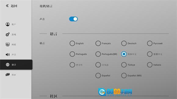 6、在语言一栏点击简体中文就能将游戏切换成中文。