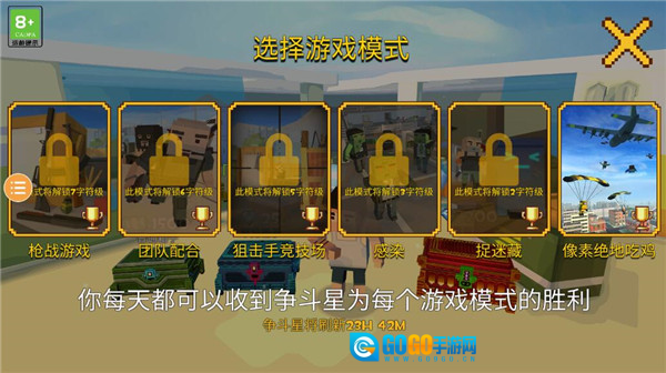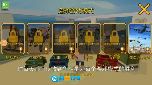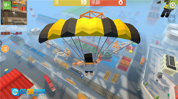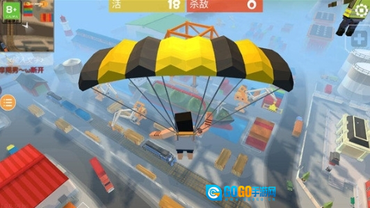 2、经典的孤岛求生、跳伞降落、辐射隔离玩法,再现刺激的方块射击乱斗场景