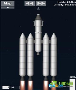 4、接着打开地图查看火箭的轨迹是否接近月球轨道,之后将用完的四个氮气桶分离。