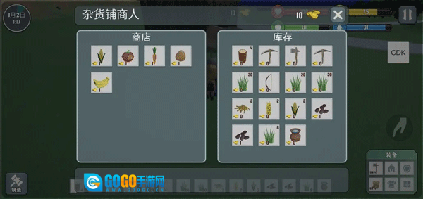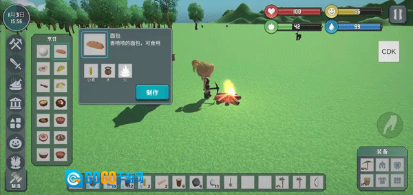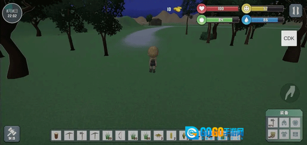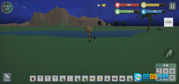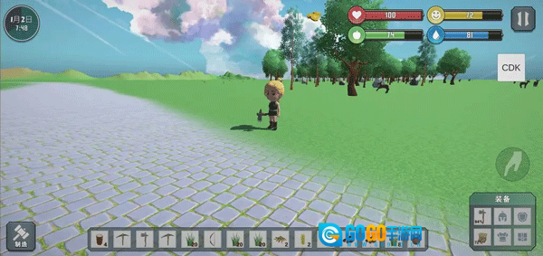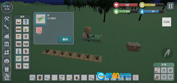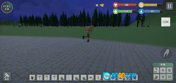 10、打造一把锄头,点击地面就能种下买来的种子;再做个围栏,把小鸡放进去后别忘了关门。到这一步,基本的生存保障就差不多有了,对了,记得做个箱子和床。饿了就去猎杀小鹿吃生肉,渴了就去水井饮水,心情低落时就睡一觉。