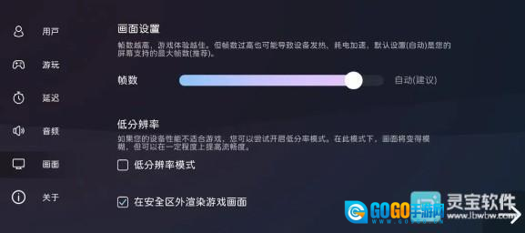 画面设置模块可以帮助调节画面有关的设置,如果设备支持,可以尽量提高游戏的帧数,在视觉和判定上有不错的效果,此外开启低分辨率模式也可以一定程度上提高流畅度。