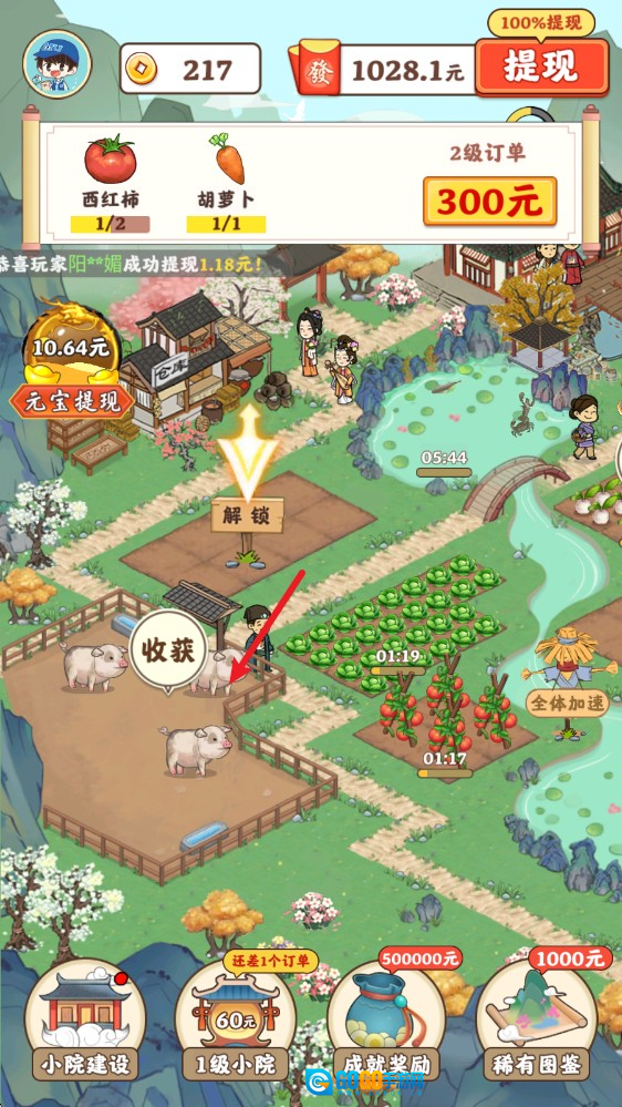 3、作物播种后需经历一段时间的生长周期,待其成熟后,点击即可完成收获。