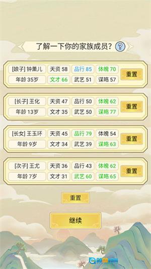 3、接着为自己取个名字,系统会随机分配对应的家庭成员,要是对分配结果不满意,依然可以进行重置操作。