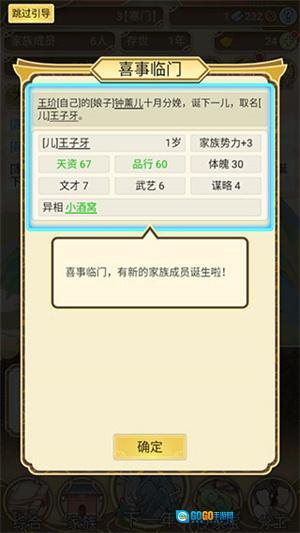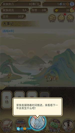 7、返回首页后,底部正中间的【下一年】按钮,其功能是助力家族发展提速,点击它就能提前知晓家中来年即将发生的重大事件。