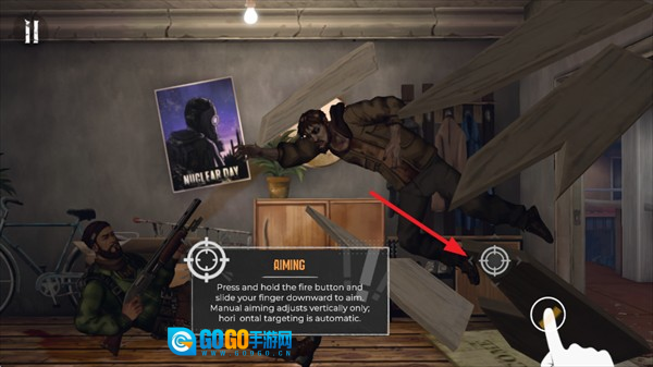 3、转动右侧旋钮,让枪口对准红色区域就能击败敌人。