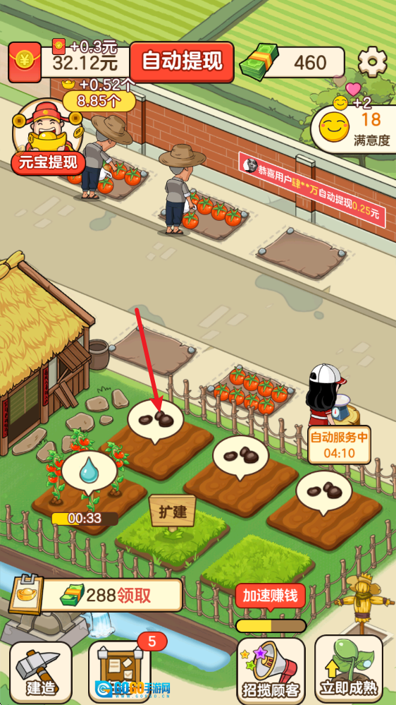 2、通过种植各类作物来赚取资金,持续发展你的菜市场与土地,解锁更多菜品,赢取丰厚奖励。