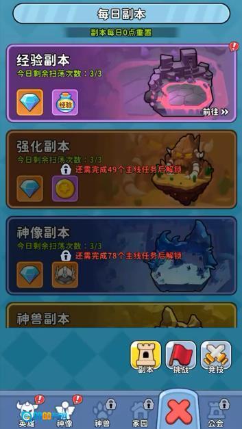 2、借助每日任务、抽卡机制以及战斗掉落的途径,不断收集并提升神魔的等级。
