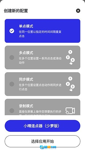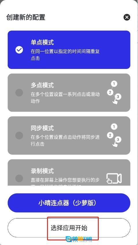 3、选择点击方式,再点击选择应用开始