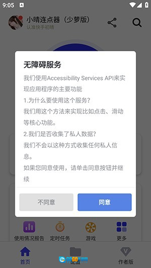 1、在本站下载小晴连点器的安装包,安装完成后第一次打开应用时,需要授予它无障碍辅助功能的权限。