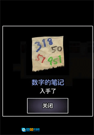 6、与那名彪形大汉一番周旋后,我回到了医务室,在右侧的抽屉里找到了一张纸条,上面写着三个数字,接着便从左边的门走了出去。