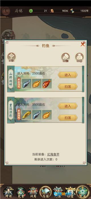 手动钓鱼可以达成一个钓满1000条鱼的成就,完成后能获得1万灵石的奖励,而选择扫荡的话则无法解锁这个成就和对应的奖励。