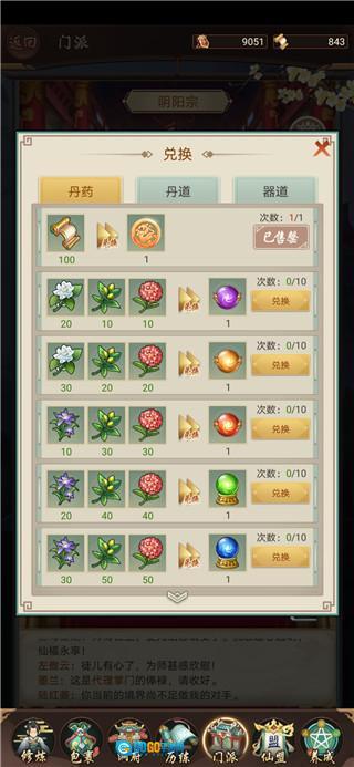 其次,游戏里的丹道与器道涉及全壶图纸,炼金术和炼器是两项关键玩法。不少玩家清楚怎么提升这两种技艺的经验,却常遇到在坊市找不到高级丹炉、器鼎的问题。其实前两阶的丹炉和器鼎都能在坊市购买,第三阶的可通过兑换获取,但从第四阶起,就得依靠“学校首徒”来兑换对应等级的丹炉或器鼎图纸了。学校的神符每天仅能兑换100贡献对应的1个,所以建议大家每天都去兑换,这样后续炼金术和炼器就不会缺工具啦。