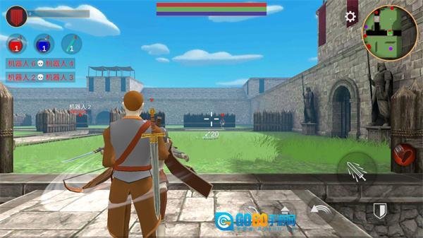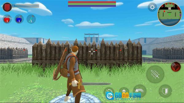 4、在敌人距离我们较远时,我们可以点击下方的箭头切换弩弓进行攻击。