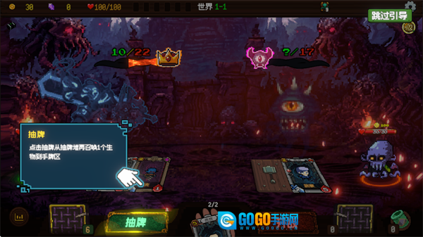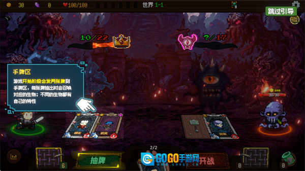 游戏开局时会发两张牌到手牌区,每抽一张牌就会召唤出对应的生物;而不同的生物各自具备独特的特性。