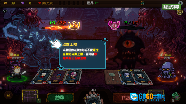 手牌区的点数总和不得超出当前总点数上限,一旦超出,所有已召唤的生物将被吞噬。