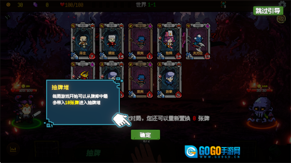 每局游戏开始时,玩家可从牌库中选取最多10张牌加入抽牌堆。