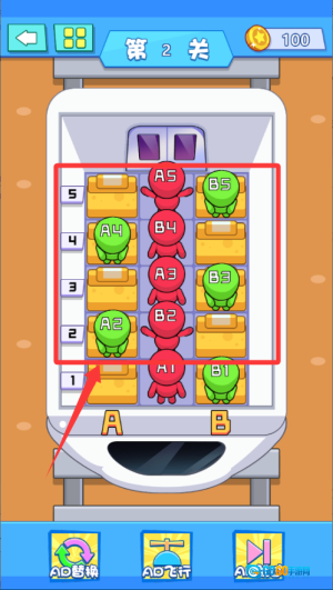 1、核心目标是对乘客的移动路径进行合理规划,借助有限空间来完成座位匹配,部分关卡需要触发机关或移开障碍物,这样才能解锁新的区域。