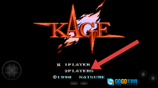 1、实体信息包含名称“KAGE”,模式选项有“1PLAYER(单人模式)”和“2PLAYERS(双人模式)”,此时呈现出初始的模式选择环节。