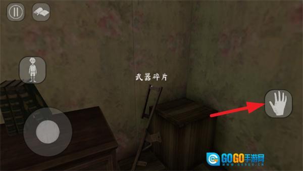 4、迅速拾取地面上的武器碎片,点击右侧中间位置的拾取按钮。