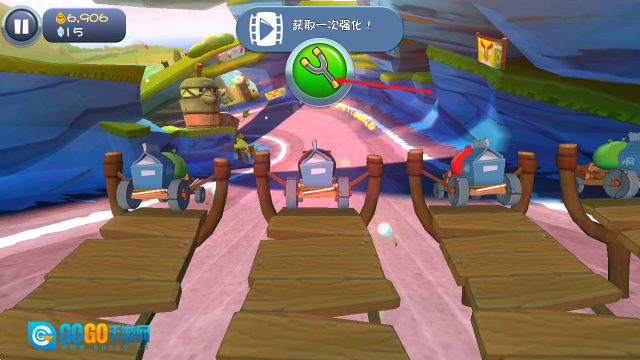 2、接着向后拉动卡丁车,之后就能像弹弓那样把卡丁车弹射出去。