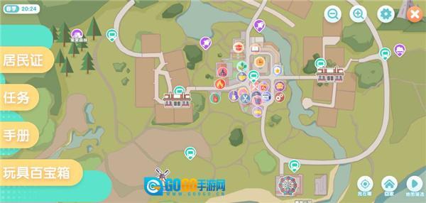 1、进入游戏后,点击屏幕右上方的菜单按钮,即可看见小镇的完整地图(看到图中的公交车标志了吗?那是真的可以传送的哦);