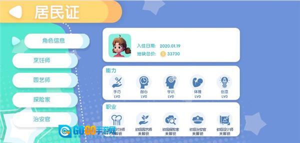 2、屏幕右侧的居民证可查看角色当前的能力等级与职业等级,努力提升自己吧!