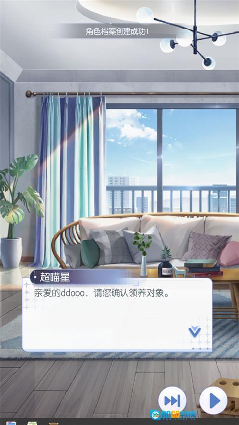 2、进入剧情旁白环节,选择输入自己的名字,确认领养对象。