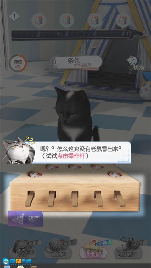 10、玩家可以顶级操作杆,和猫咪开始打地鼠游戏;
