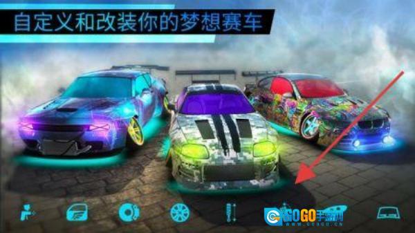 2、进入改装界面后,可对赛车进行自定义设置,包括外观和性能部件等方面,以此提升赛车的漂移属性。