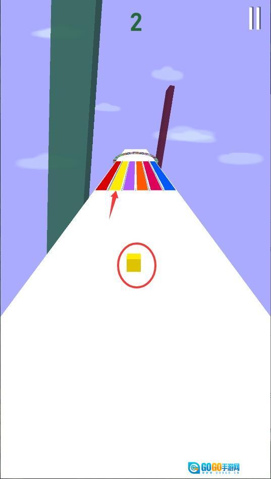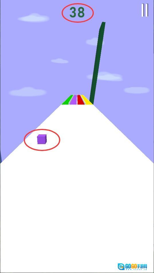 3、通过左右滑动来调整移动方向,必须保持与当前轨道的色泽一致才能顺利通过,一旦失误就会导致挑战失败。